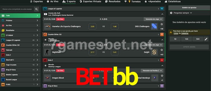 O Betbb oferece uma grande seleção de opções de apostas em e-sports com probabilidades competitivas